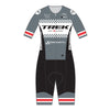 Offers the same functionality as a two piece jersey and bib short, but with the added comfort and aerodynamic benefit of a one piece skinsuit. The Performance Skinsuit has been developed with road racing and training in mind, with two deep rear pockets for storage needs, a full front zipper for temperature regulation and fitted front waist band for ideal fit. With premium silicone bib and arm bands, the Performance suit will stay in place no matter the conditions. Options to customize your suit include longer length leg option. The Performance Skinsuit is our all rounder, offering the most flexible choice.